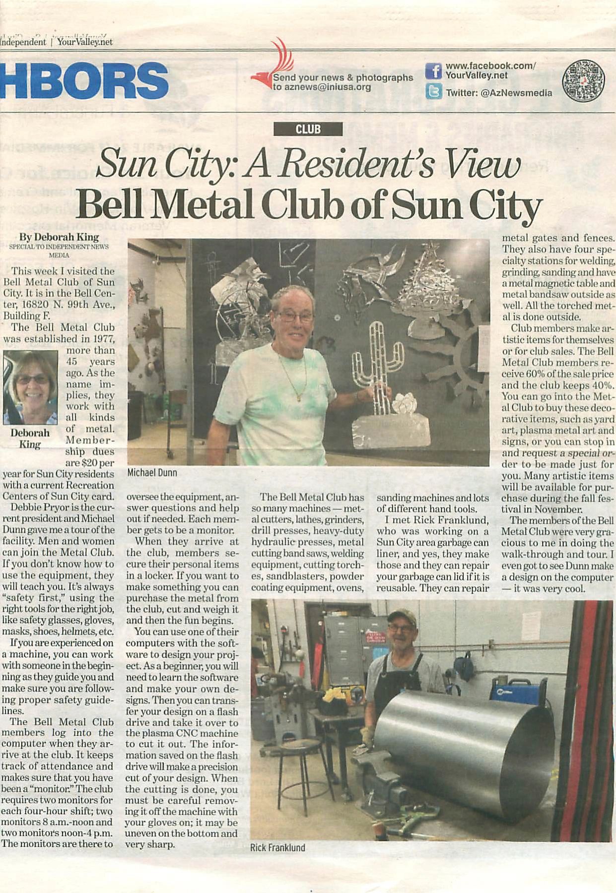 Our Metal Club is over 25 years old and many of our members have spent countless hours of dedicated service to make Bell Metal Club what it is today. It is a place where many friendships have been made through the years. We are very proud of our club and hope that you will stop in for a visit. A monitor will show you around and answer any questions you might have.